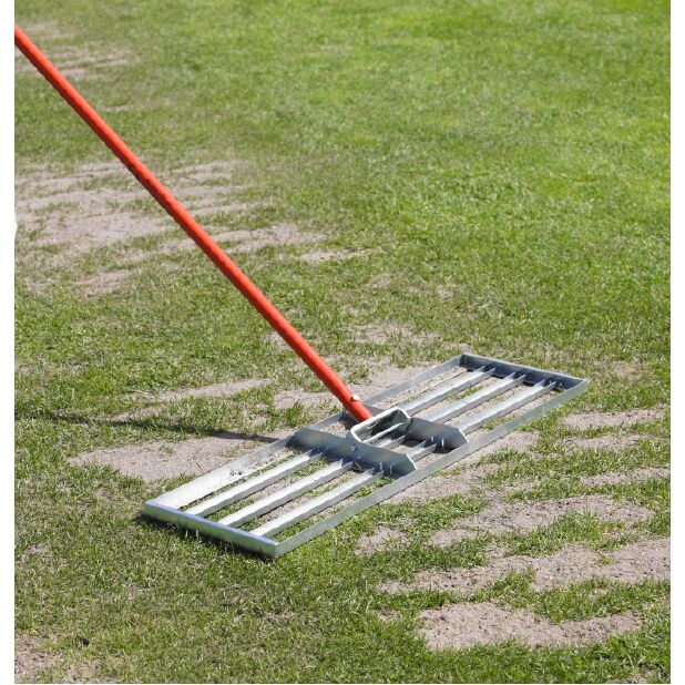 Yes. The AccuLevel is well-suited for use on golf greens during topdressing and soil preparation. Its flat steel head distributes material evenly across the surface, which is essential for maintaining smooth, consistent putting surfaces. It is also effective on tee boxes, bunker surrounds, and fairway areas requiring leveling or amendment work.