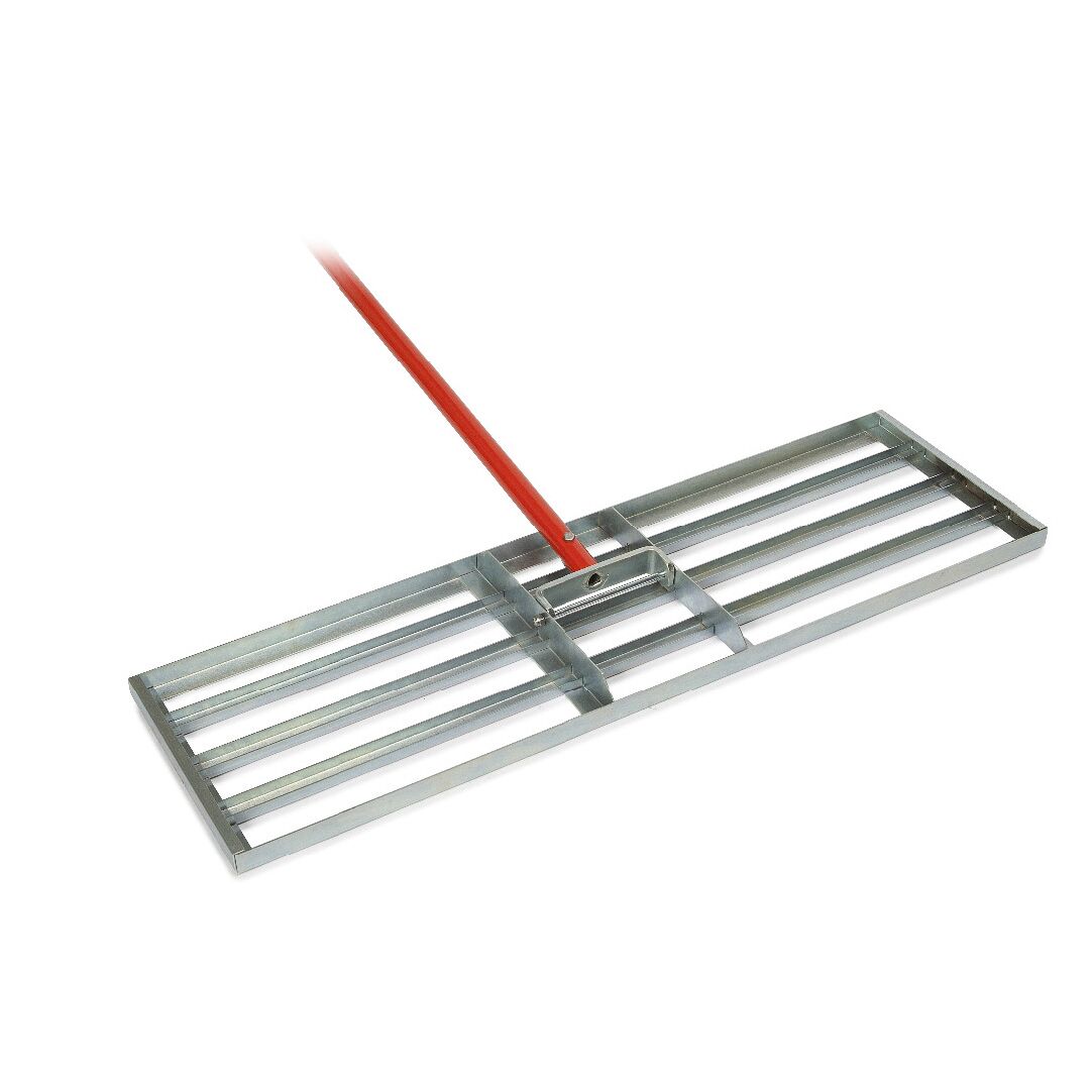 The AccuLevel features a 34″ x 10″ plated steel head and a 72″ lightweight aluminum handle. The generous head width allows for broad, even coverage during soil spreading and leveling, while the 72″ handle length provides comfortable reach and leverage for turf maintenance crews working across large surface areas.