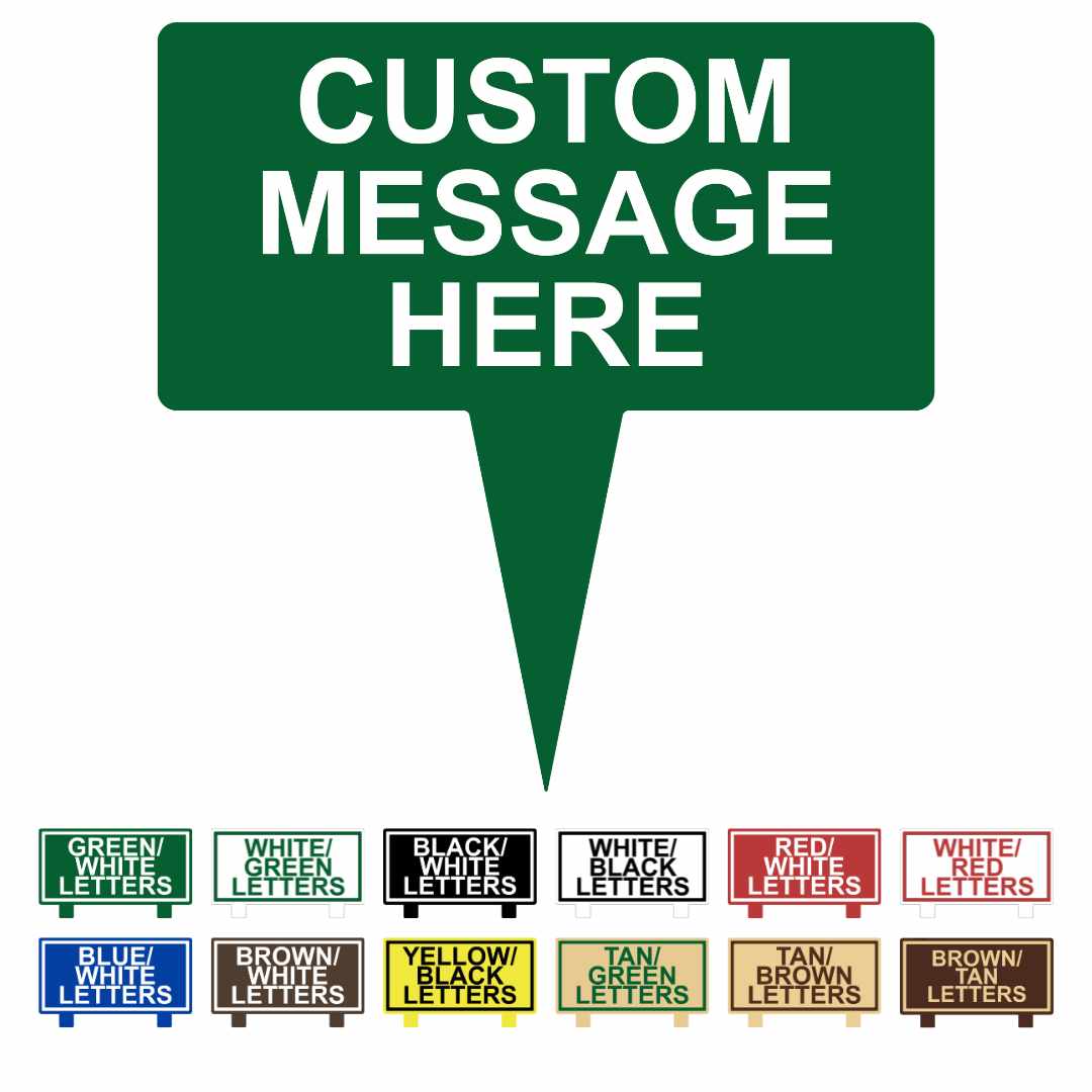 Customize your message with single or double-sided options and choose from our range of stock colors: Green with White Letters, White with Green Letters, Black with White Letters, or Brown with White Letters. Have a particular palette in mind? Special order colors like Red, Blue, Yellow, or Tan are available—just call for details.