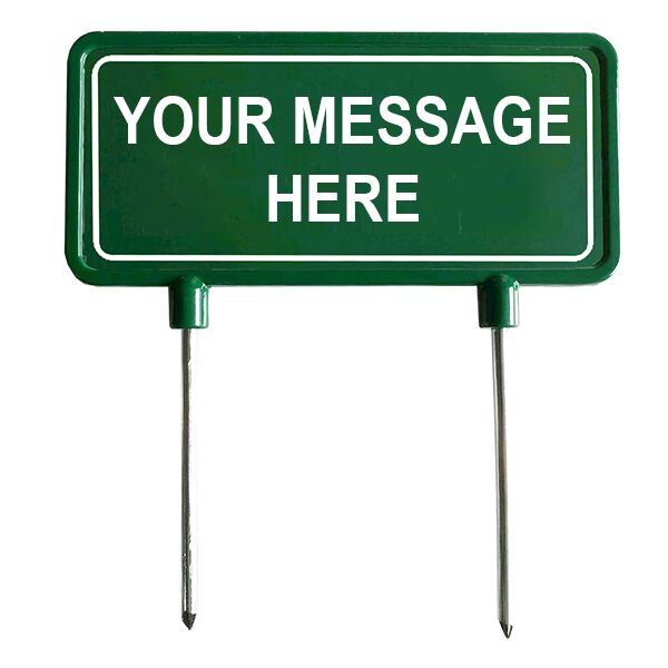 - Made of durable green aluminum and galvanized spikes, these custom signs and flags are built to last in any outdoor setting.