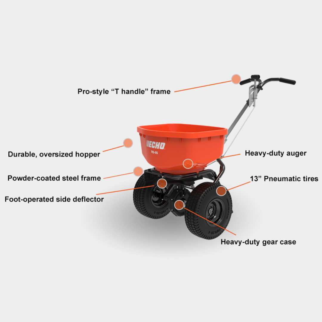 Don’t compromise on quality – achieve a lush, evenly fertilized lawn with the Echo RB-85 Broadcast Spreader. Order yours today and see the professional difference!