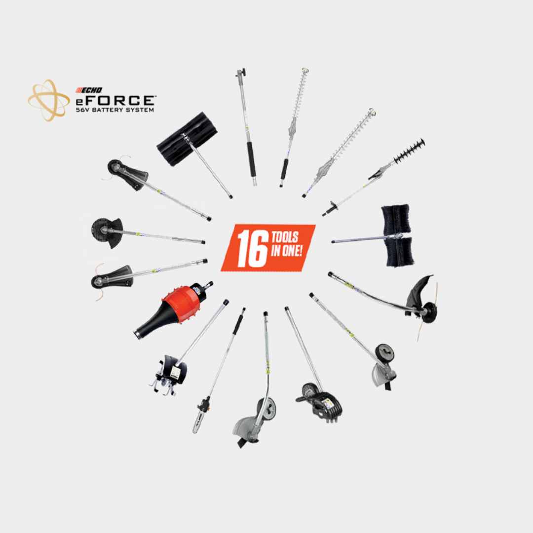 Imagine the convenience of having 16 different tools at your fingertips, all powered by a single, whisper-quiet powerhead. From trimming hedges to pruning trees, edging lawns to cultivating gardens – the Echo eFORCE® system does it all with unparalleled versatility.