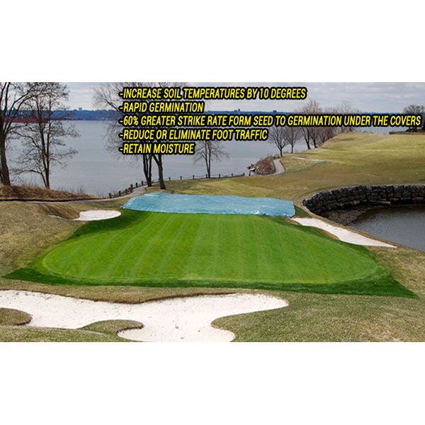 The Evergreen Turf Cover is the trusted choice for golf course superintendents and turf professionals who need reliable, season-extending protection for greens, tee boxes, and newly seeded areas. Lab-tested and golf course-approved for over 20 years, Evergreen has helped crews get golfers putting sooner by shielding turf from frost, winter kill, and slow germination conditions. Each cover is supplied with pink sod staples and a storage bag for convenient handling and reuse.