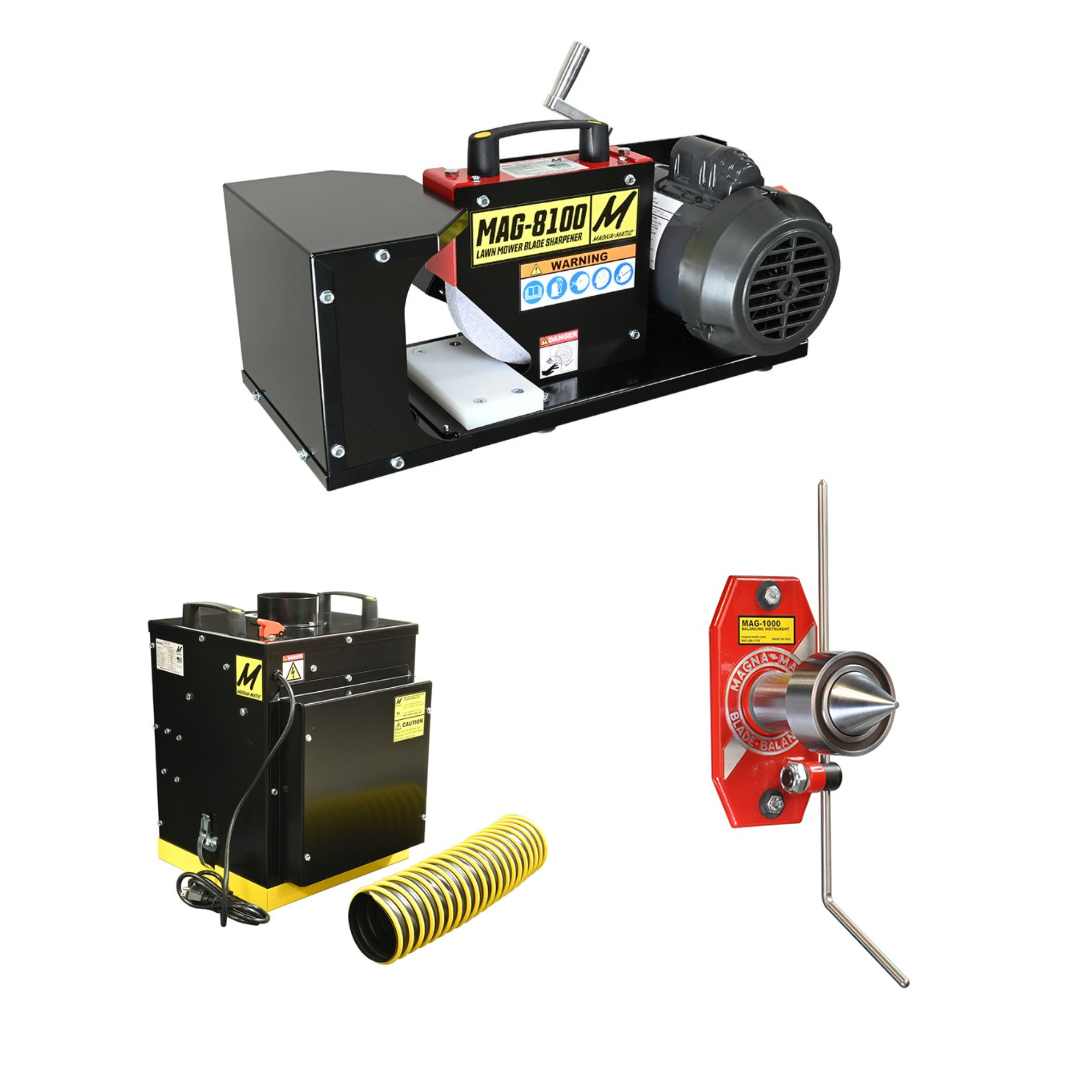 This comprehensive system is designed to revolutionize your lawn mower maintenance routine. With the MAG-1000 Blade Balancer, you’ll consistently achieve perfect balance, ensuring smooth operation and reduced vibration. The powerful MAG-8100 Blade Sharpener, featuring a robust 1/2 HP motor and ported grit guard, delivers precise, consistent sharpening for razor-sharp blades that quickly cut.