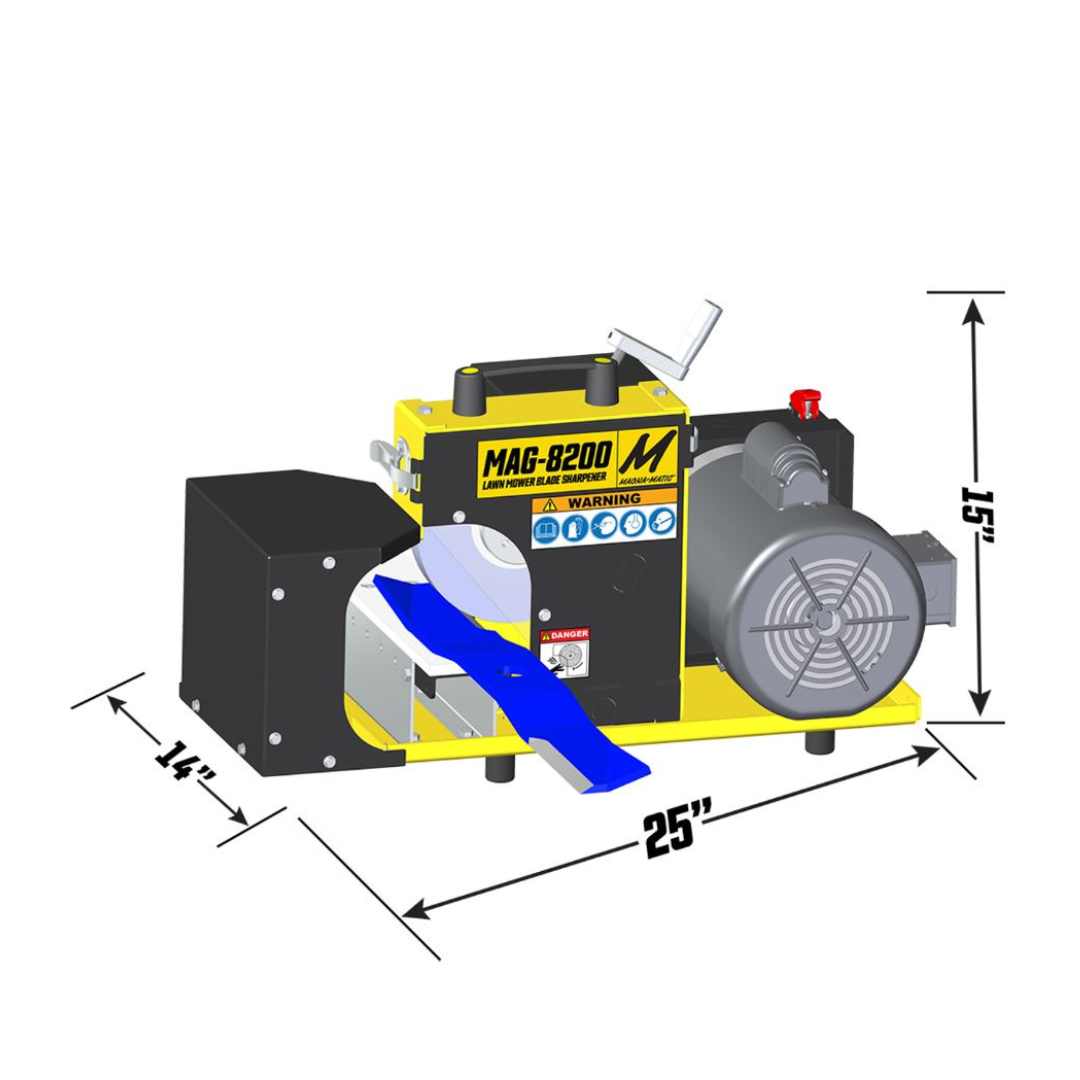 - MAG-8200M Blade Sharpener: A powerful 1 HP motor, ported grit guard, and versatile 1″ & 1/2″ wheels for precision sharpening.