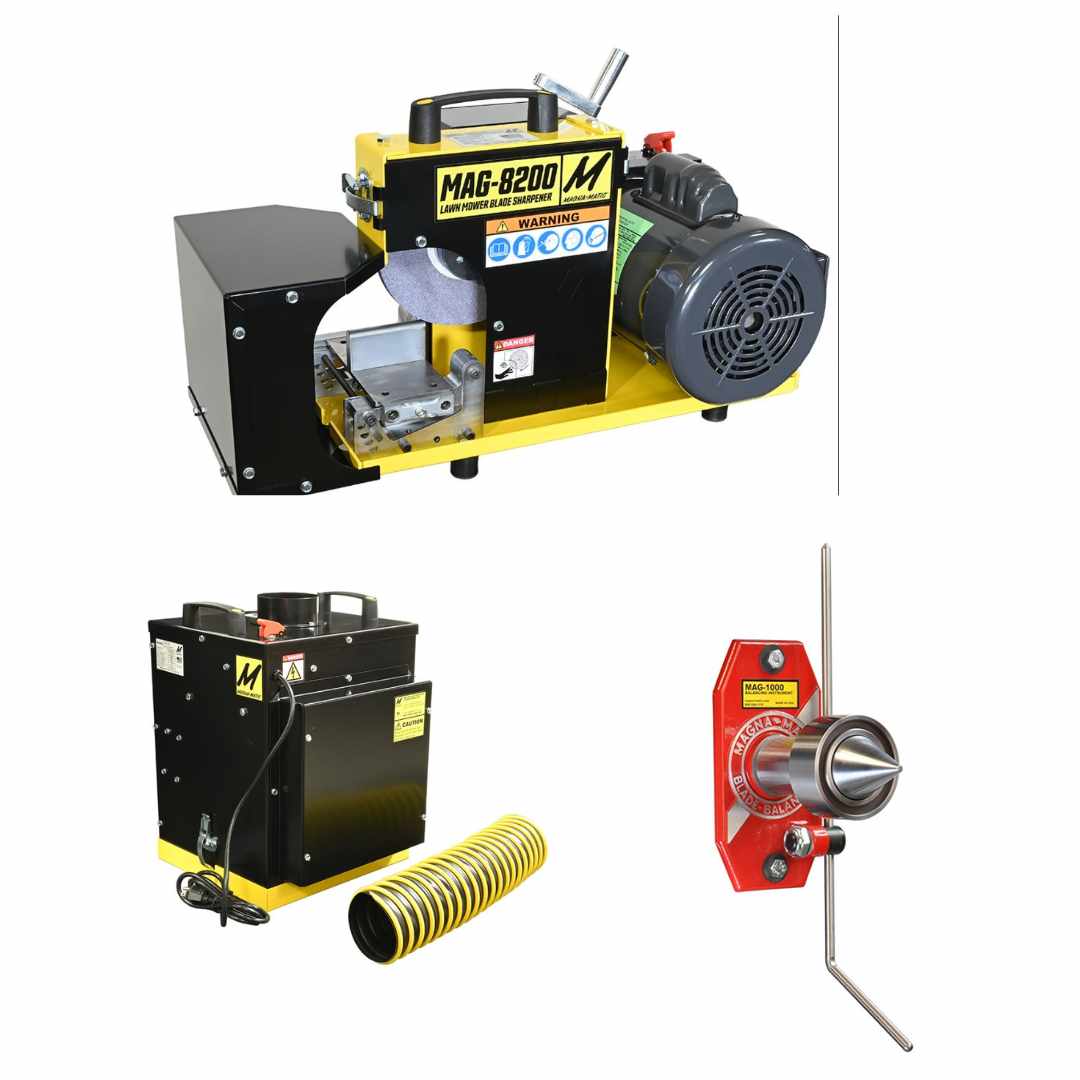 Tired of dull, unbalanced lawn mower blades ruining your perfect lawn? Introducing the Magna-Matic 8200M Series Professional Workstation – System 5, the ultimate solution for lawn care professionals and enthusiasts alike. This comprehensive system ensures your rotary lawn mower blades are always perfectly balanced and razor-sharp, delivering unparalleled cutting performance.