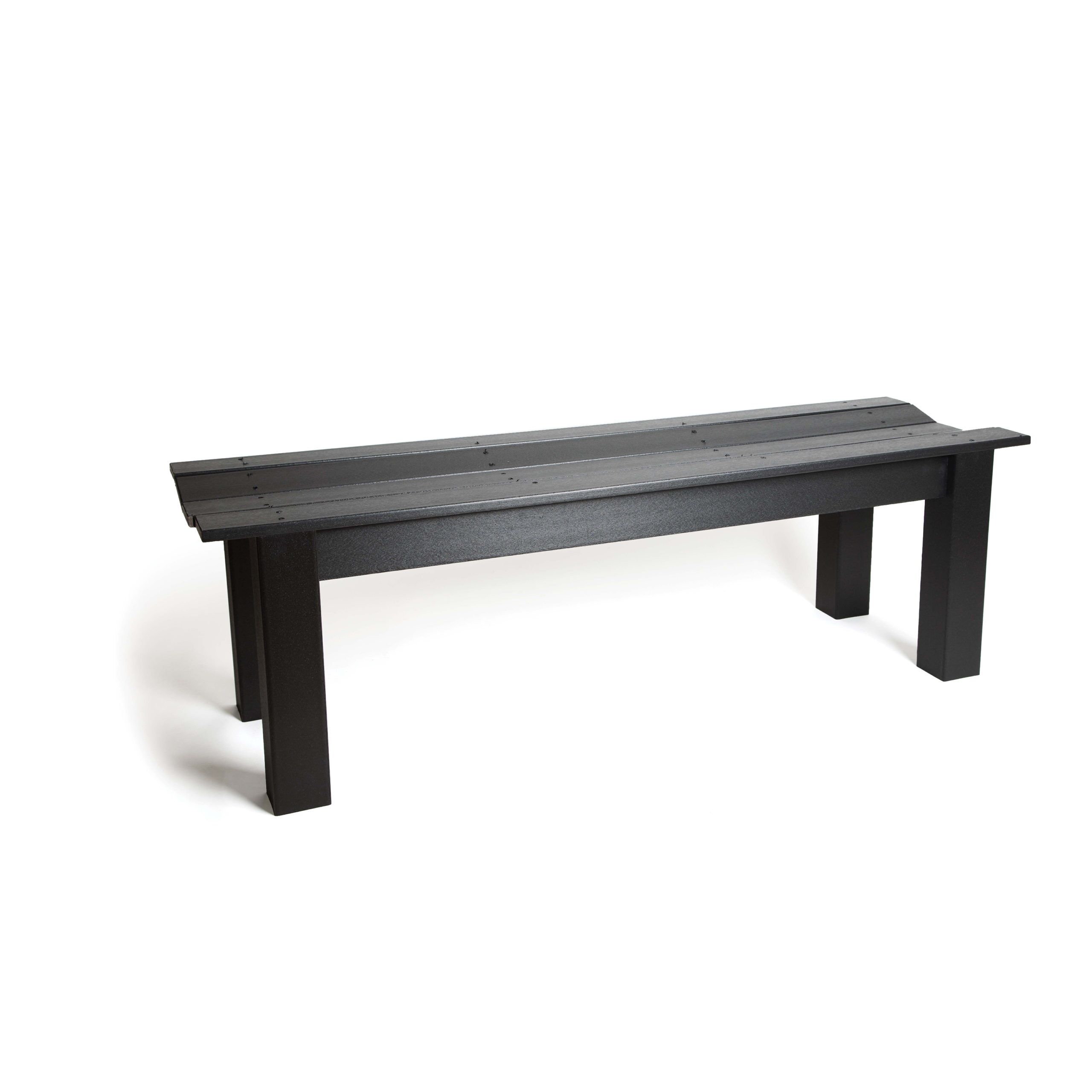 This mall bench is made of durable and fade resistant recycled lumber material that requires minimal maintenance.