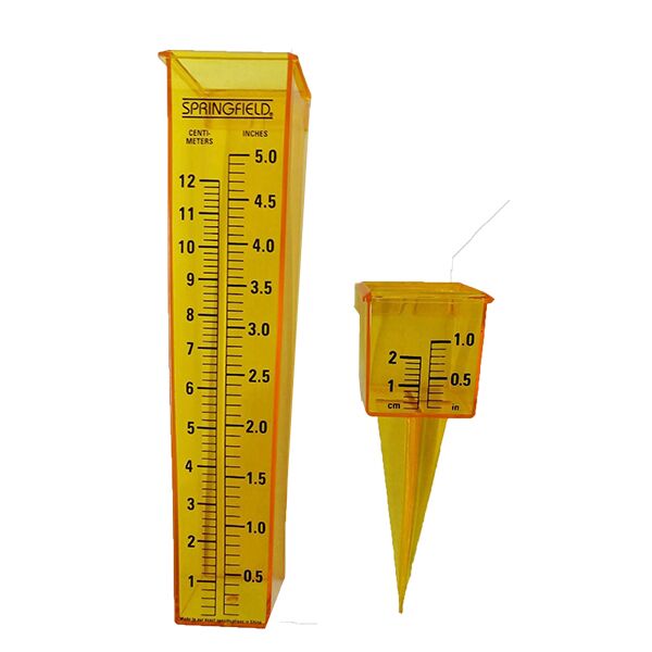 • This weather-resistant 2-in-1 rain gauge and sprinkler gauge features bold markings in inches and centimeters to measure rainfall.