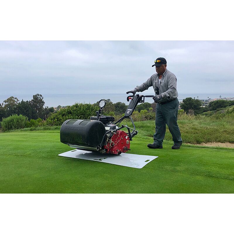 Our turning boards are designed by superintendents to prevent turf loss, especially in the winter. Turning walk mowers tightly on collars can cause compaction and wear issues to the turf. Set these boards down before your next pass and easily turn the machine on them.