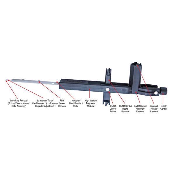Designed for convenience and performance, the SuperKey XL boasts a screwdriver tip for cap disassembly and pressure regulator adjustment, as well as the ability to easily remove filter screens and solenoid plungers. Its hardened, bend-resistant metal construction ensures long-lasting durability, while the high-strength engineered material provides the ultimate in strength and reliability.