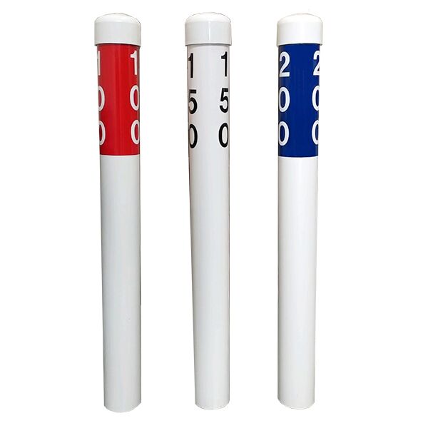 Our Vertical Distance Marker is made of high quality PVC and numbered in vinyl numbers to make a highly visible, low cost yardage pole that is easy to see and read.